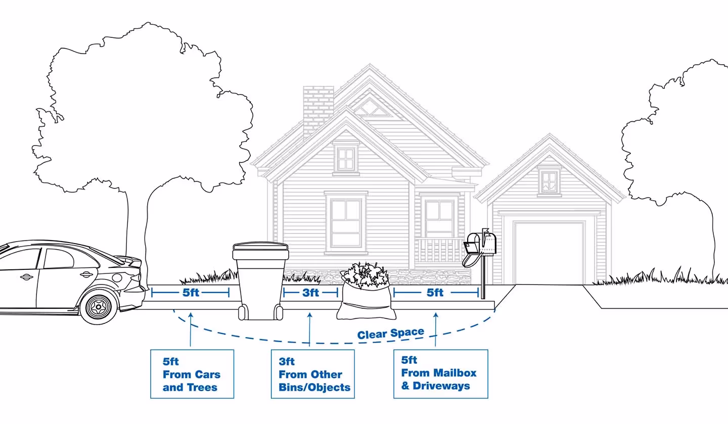 The correct placement of your trash can will ensure the collection of your garbage, recyclables or yard waste.